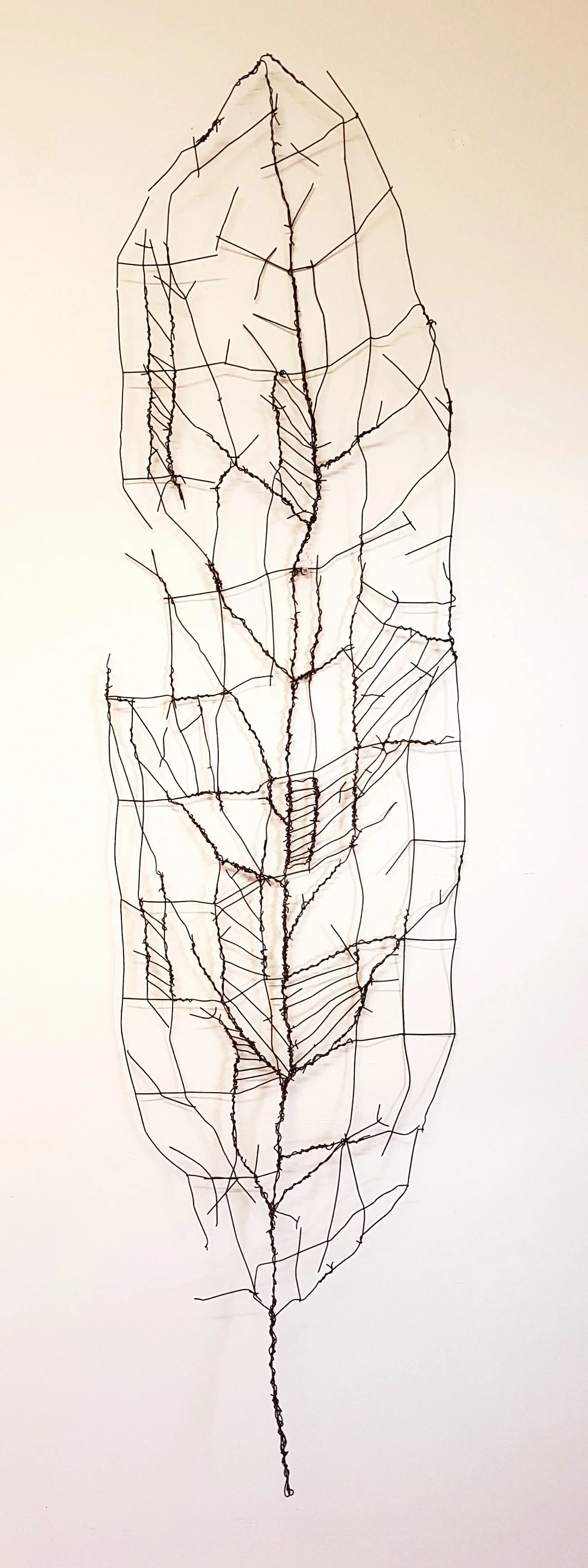 By reshaping the metal wire into a fragmented, abstract leaf, the natural and the manmade merge to suggest the connection and interaction between the two, and how they affect one another.